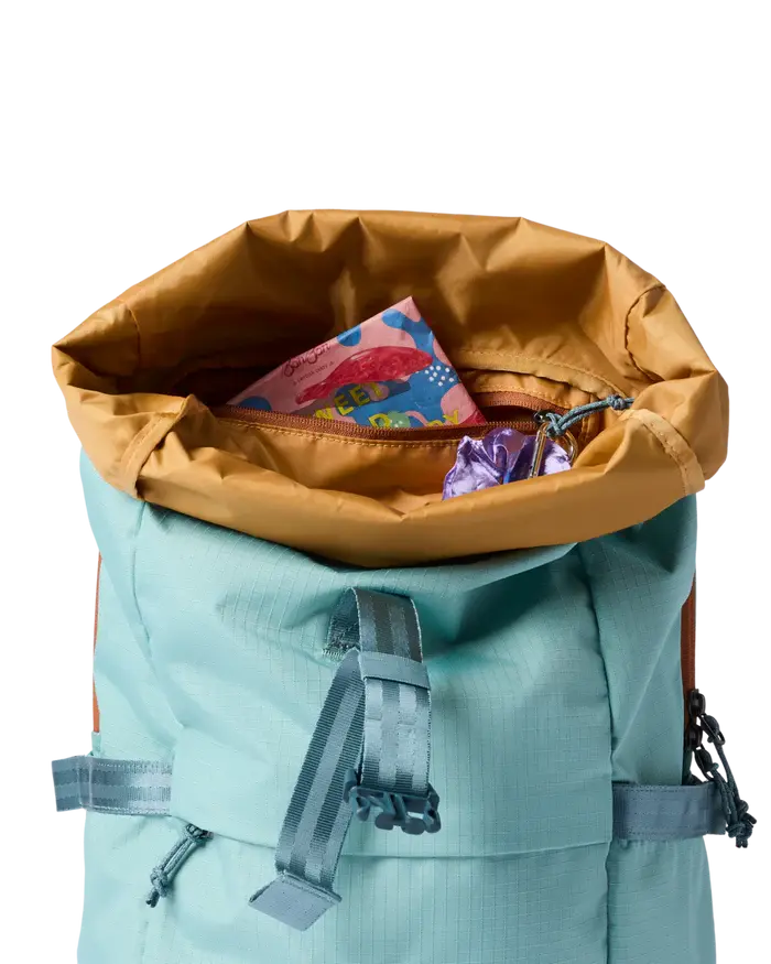 Small but mighty, we built the Consuelo 22L Daypack to accommodate shorter torsos. This reliable pack is built with recycled polyester, and the contoured straps provide extra space for people with busts. A roll top main compartment, dedicated laptop sleeve, zippered compartments, and water bottle sleeves make hitting the town a breeze.