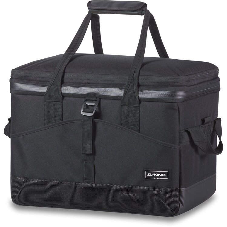 We know you love to spend time with friends at the beach, the trailhead, the campsite, the ski resort parking lot—and keeping those post-session beverages and snacks cool is of paramount importance. That’s why we’ve designed our versatile, highly portable 50-liter Cooler to be the one-stop shop for your après festivities. Insulated with 1-inch-thick, closed-cell foam, the fully welded interior cooler compartment will easily hold a 30-pack without ice, or a 24-pack with ice. A handy stash pocket on the front provides quick access to frequently used items, while the aluminum closure buckle of the front strap doubles as a bottle opener. The zippered storage compartment on top of the lid is ideal for items you want to keep away from ice, and an interior mesh snack pocket separates the food from the bevvies. The stone tarp colorway is made of a durable, abrasion-resistant tarpaulin material, while the black colorway is constructed from a robust, 600D polyester. Sling the Cooler over your shoulder with the removable, padded strap, or use the duffle or side handles for one- or two-handed carriage. The mobile banquet may never end.