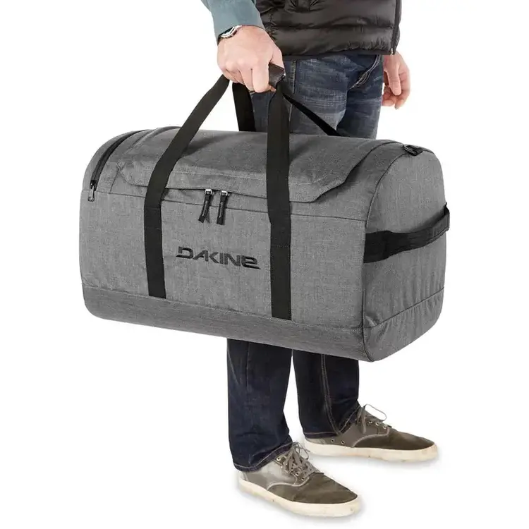 Gear hauling and road tripping made easy. It's hard to beat the all-around versatility of a durable duffle bag. For extended road trips and gear-intensive weekends, the 70-liter Dakine EQ Duffle has the space you need to pack the goods. A full-length U-shaped opening makes for easy access to a generous main compartment. There's a zip end pocket to keep small items easy to find, and the whole bag stuffs into the end pocket for easy storage when empty.