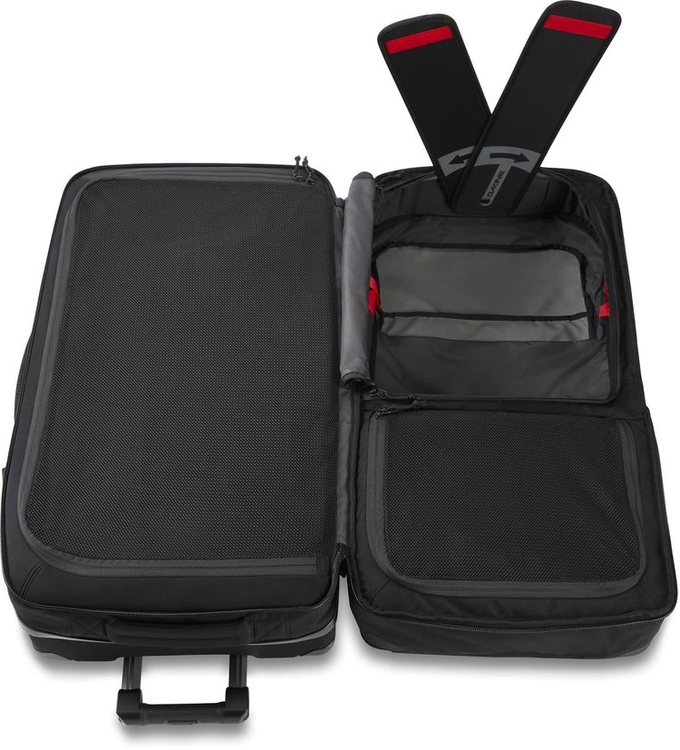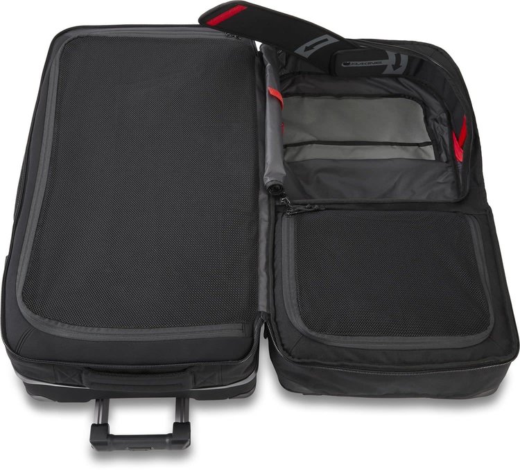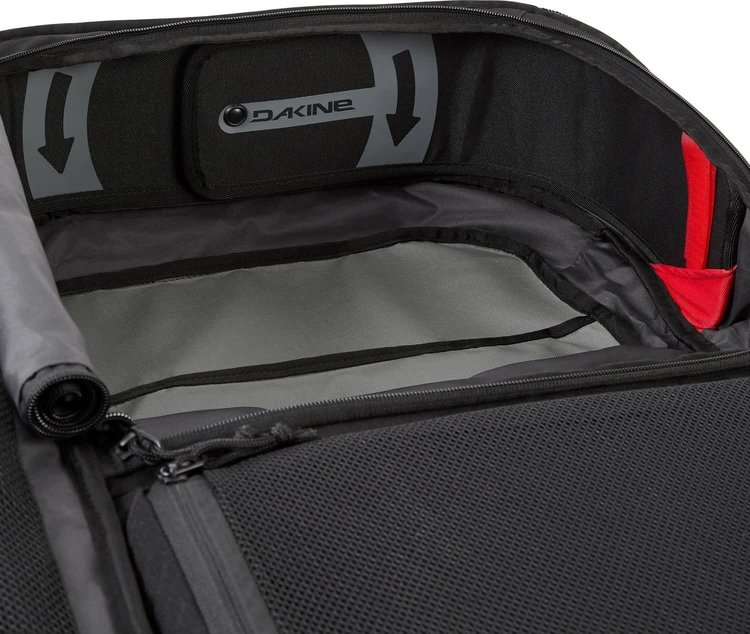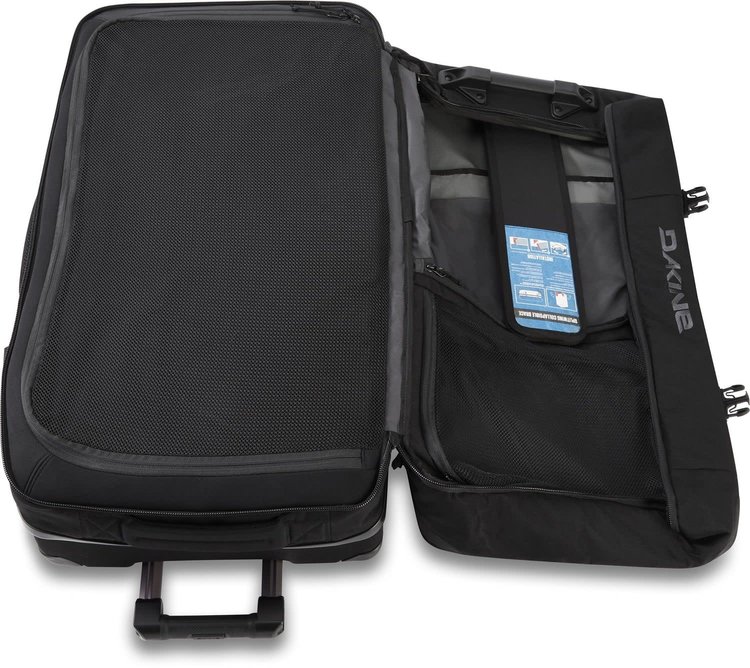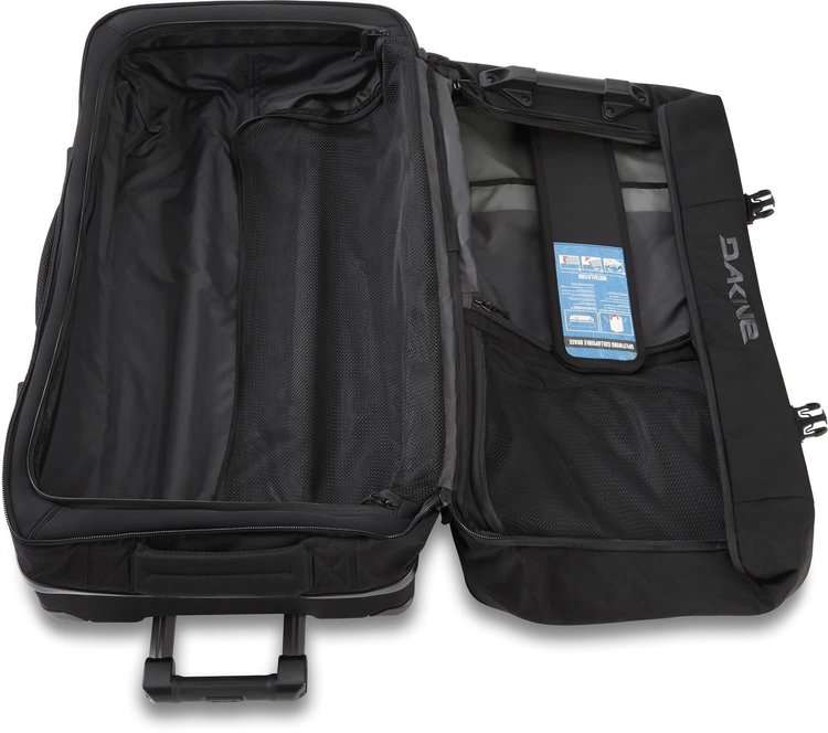 • Living the adventure life is gear intensive. When your next mission calls for a little of everything, the Dakine Split Roller 110L bag makes getting it all there easy. The bag divides organization into a split-level design that gives easy access to multiple large compartments. It's like a traveling locker room that you can live out of while on the road. Mesh dividers maintain visibility and the collapsible Split-Wing feature lets you compress the bag for easy storage when not in use. Bomber oversize zippers provide years of reliable closure, and durable wheels keep you rolling down sidewalks and even dusty roads with ease.