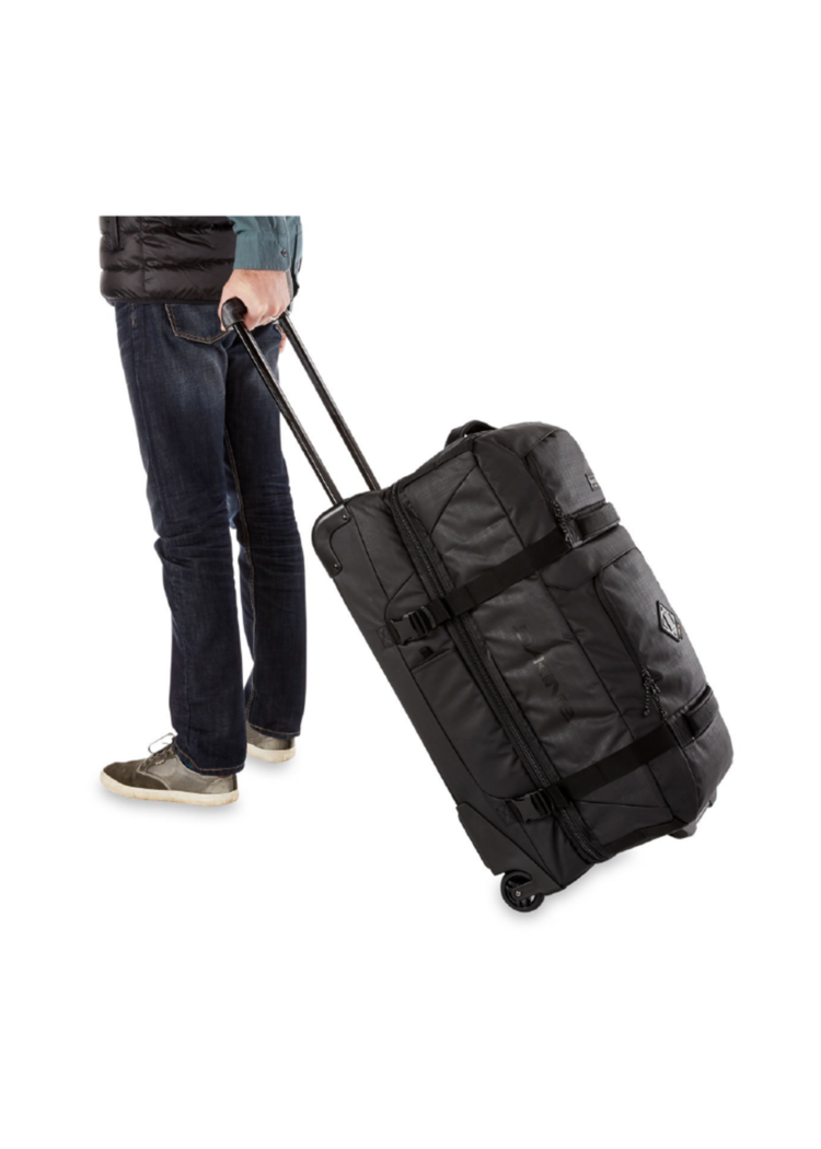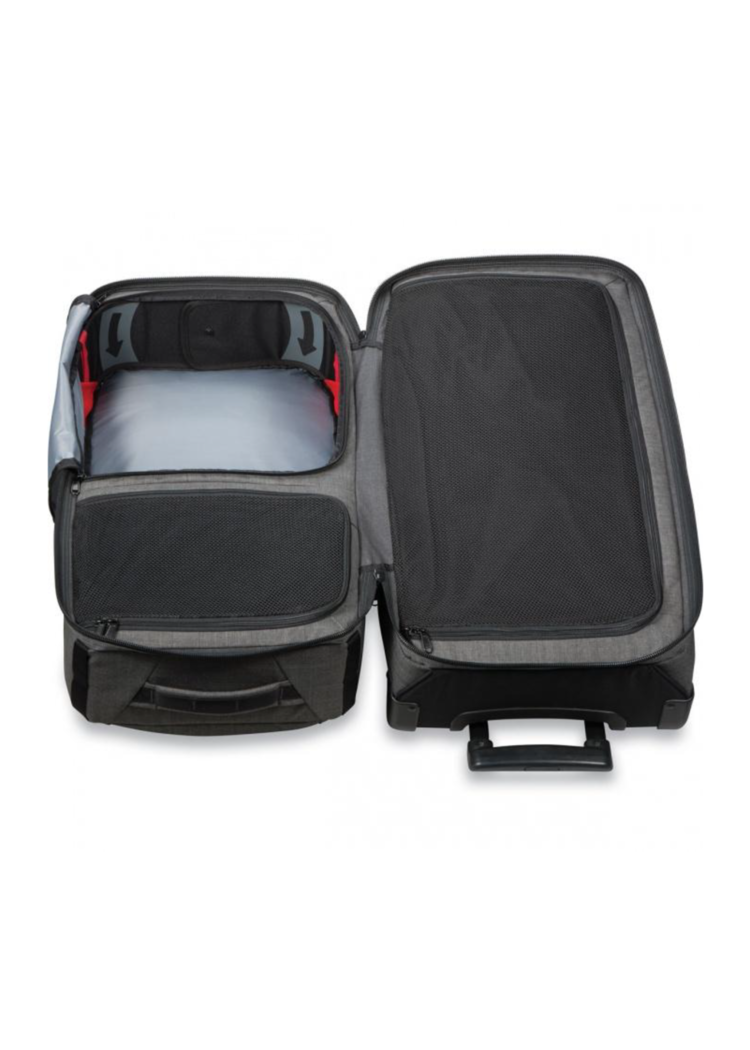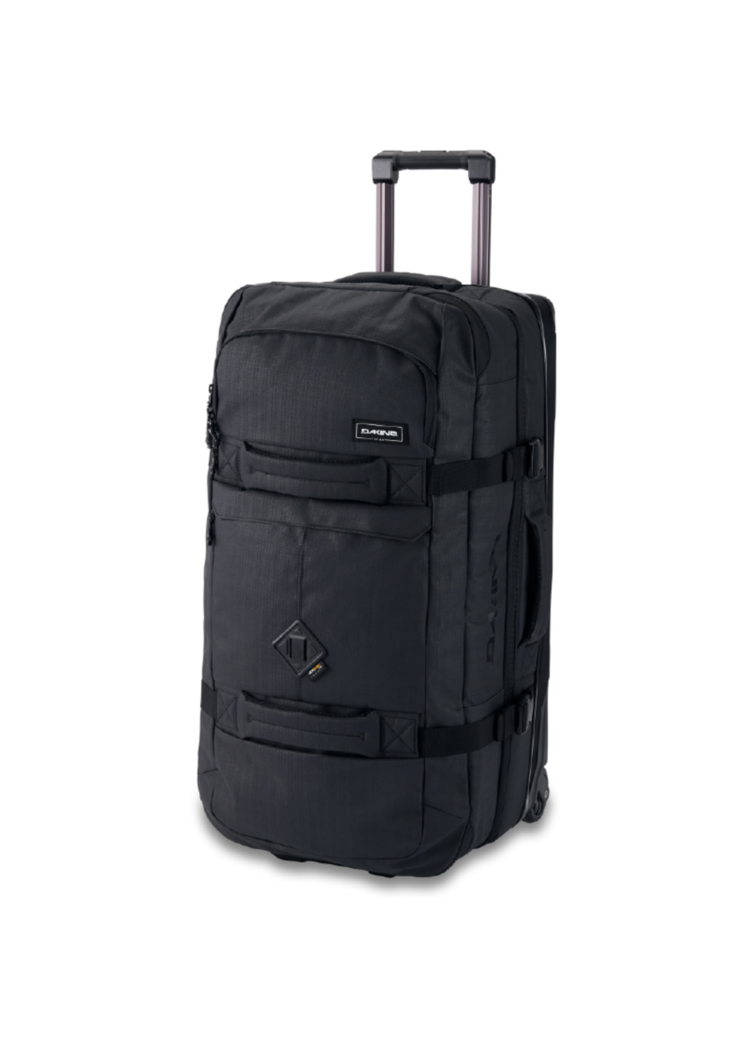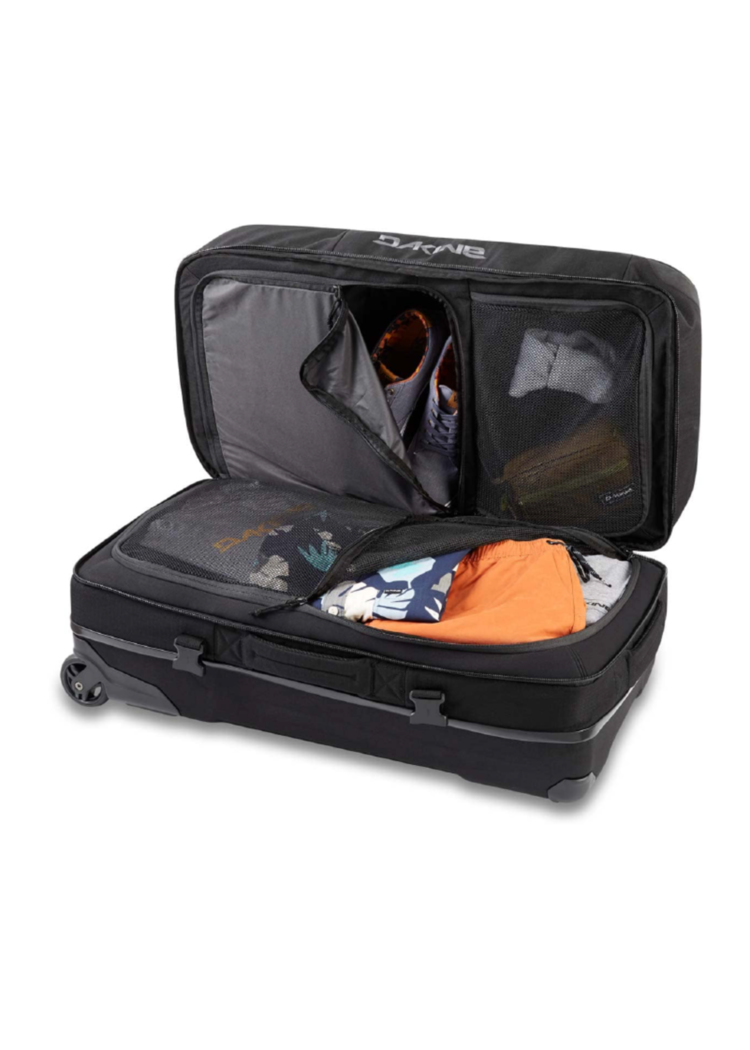 When the trip of a lifetime comes along, the Dakine Split Roller 85L travel bag gives you the space for that save-the-day rain gear and must-have gear, on top of all the other clothes you know you'll need. The bag divides organization into a split-level design that gives easy access to multiple large compartments. It's like a traveling locker room that you can live out of while on the road. Mesh dividers maintain visibility and the collapsible Split-Wing feature lets you compress the bag for easy storage when not in use. Bomber Oversize zippers provide years of reliable closure, and durable wheels keep you rolling down sidewalks with ease.