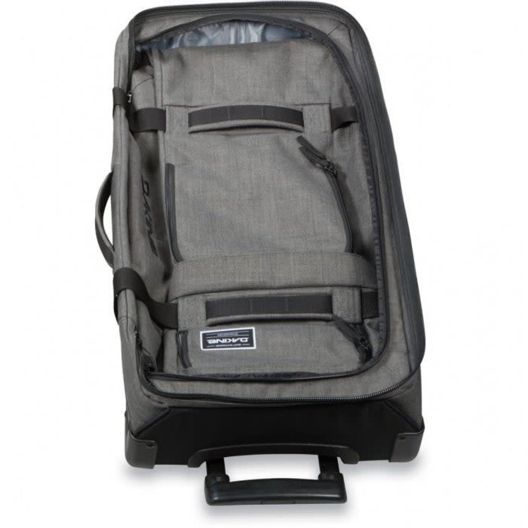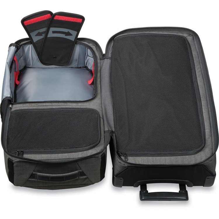 When the trip of a lifetime comes along, the Dakine Split Roller 85L travel bag gives you the space for that save-the-day rain gear and must-have gear, on top of all the other clothes you know you'll need. The bag divides organization into a split-level design that gives easy access to multiple large compartments. It's like a traveling locker room that you can live out of while on the road. Mesh dividers maintain visibility and the collapsible Split-Wing feature lets you compress the bag for easy storage when not in use. Bomber Oversize zippers provide years of reliable closure, and durable wheels keep you rolling down sidewalks with ease.