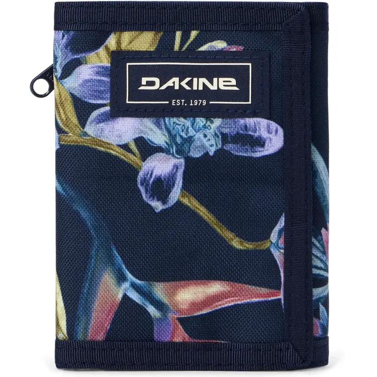 • The Dakine Vert Wallet is our classic hook and loop closure tri-fold wallet. The Vert Rail is your first wallet, your casual wallet and your favorite everyday wallet all in one. Slim, durable and no nonsense, the Vert Rail wallet opens up to include a full-length currency pocket multiple card slots, plus a zippered coin pocket. The Vert Wallet is offered in plenty of unique patterns and colors to match your personality.