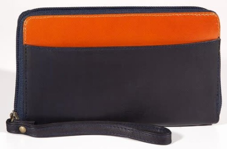 Derek Alexander Monte Carlo Large Full Zip Clutch Wallet Navy/Orange
