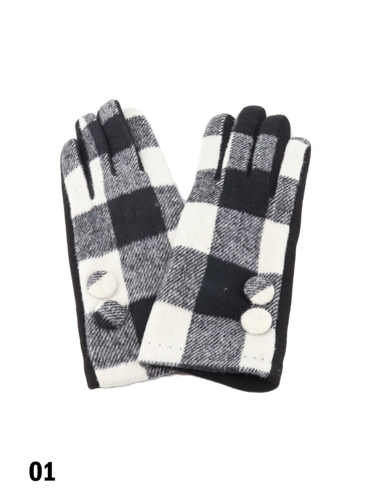 Double Button Buffalo Plaid Touch Screen Glove - Black