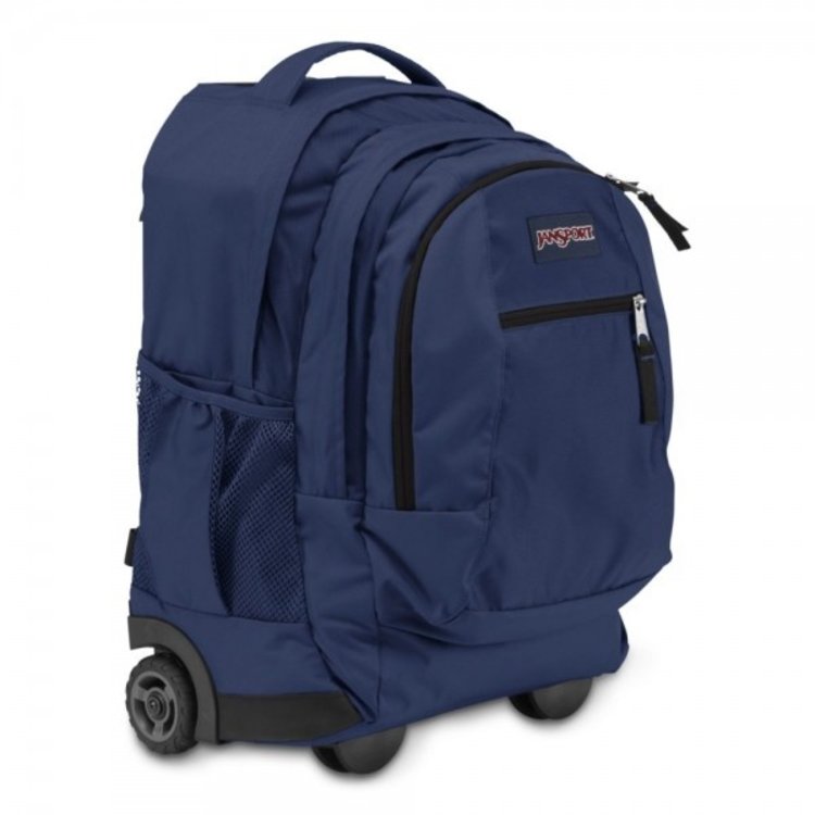 For a life on-the-move, the JanSport Driver 8 rolling backpack converts from backpack to roller with tuck-away shoulder straps. This wheeled laptop backpack features a padded 15 inch laptop sleeve, side water bottle pocket and front organizer pocket.