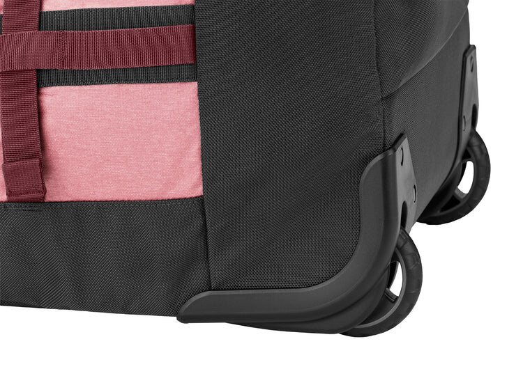 • Fitted with a grab handle and rubble-smoothing wheels that trolley big loads across docks, campsites and soccer pitches, this duffel dramatically reduces the grunt factor when lugging freight over short distances. Shoulder straps and tuckaway backpack straps offer additional carry options, and reinforced lash points let it ride on roof racks or saddles. When stored, the bag slides into the included stuff sack—which doubles as a packing cube.