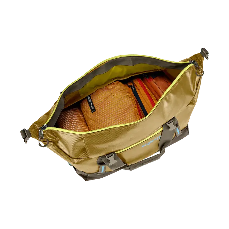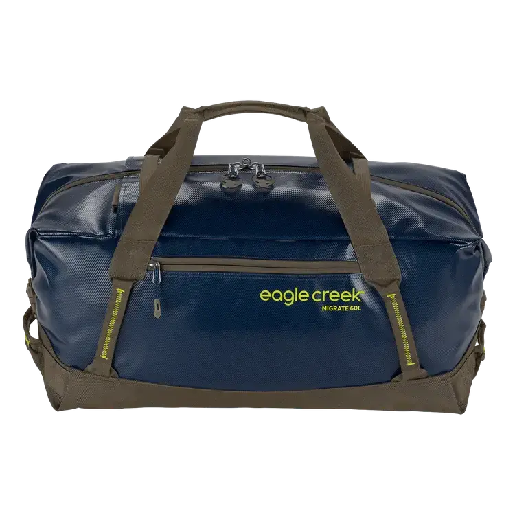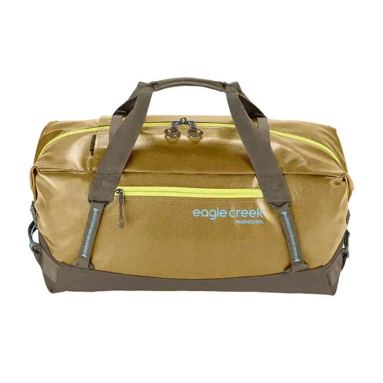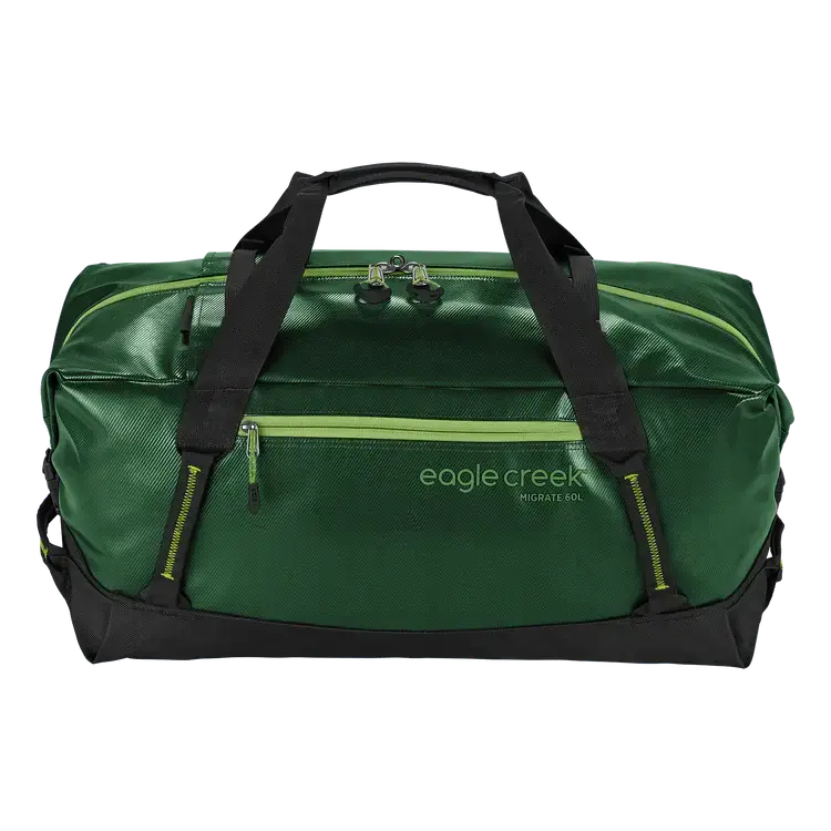 Whether you`re hauling camping gear or expedition packing, the eco-friendly Migrate Duffel 60L will make it through all your adventures with its heavy-duty construction. Carry it on your back, check it at the airport, or tie it down on your vehicle. This water-resistant TPU coated duffle will take a beating and then some.