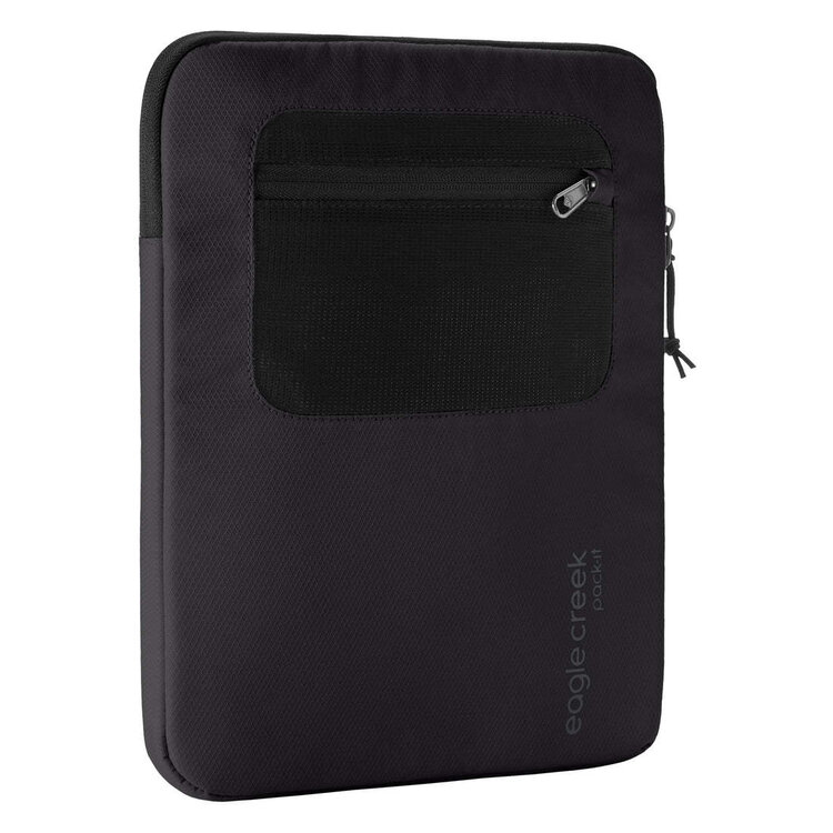 Balancing weight savings with device protection, the Pack-It® E-Tools 12" Laptop Sleeve is a streamlined sleeve that wraps a 12-inch laptop with a soft fleece lining backed by padding to buffer impacts. A zippered stretch-mesh pocket secures charging accessories, and its slim dimensions let it stow away into compact backpacks and totes. All fabrics are 100% recycled.