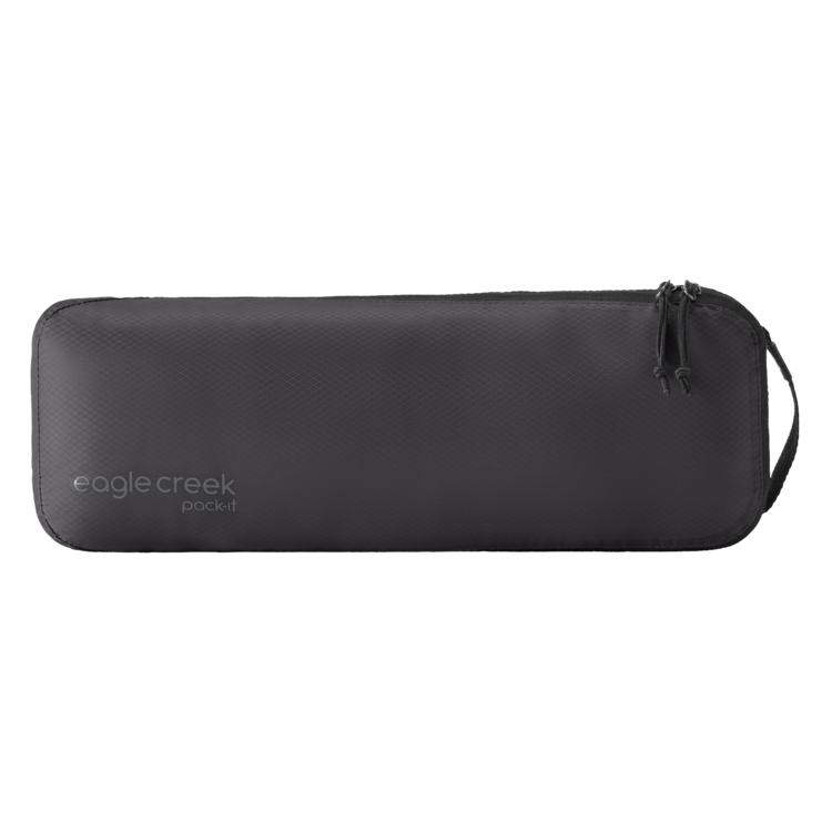Maximize every inch of luggage space with the clever Pack-It® Isolate Slim Cube M, designed to fit between the handle tubes inside rolling luggage and bags. Its angled opening secures underwear, socks and other small items in place during packing. The lightweight, 100% ocean-recycled fabrics are water-resistant.