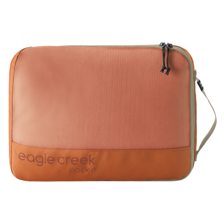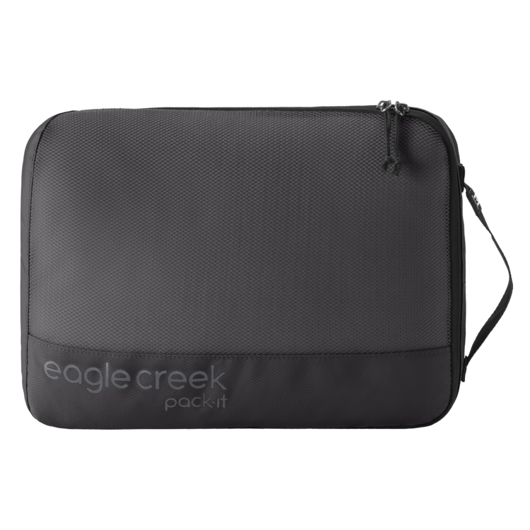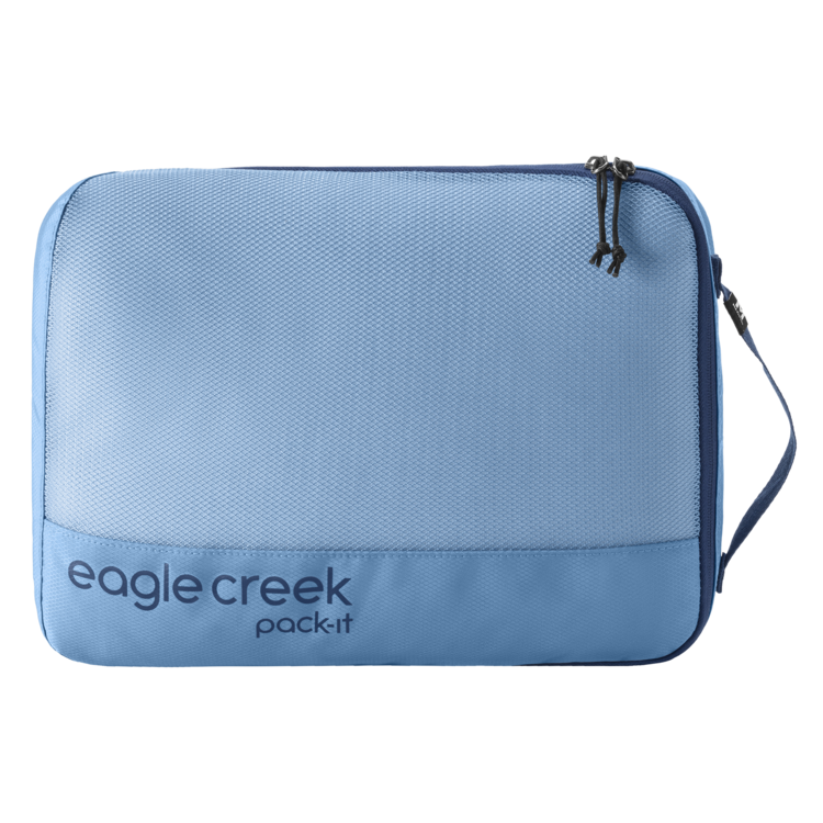 Find your next outfit fast with the structured, mesh-topped Pack-It® Reveal Cube M, which makes shirts, pants, and skirts easy to locate. The angled opening holds rolled or folded garments in place during packing and organizes them into a tidy, space-saving cube. Fabrics are water-resistant and 100% recycled.