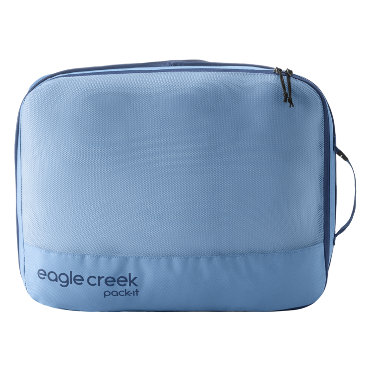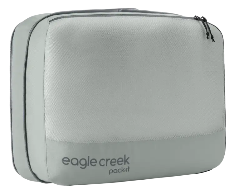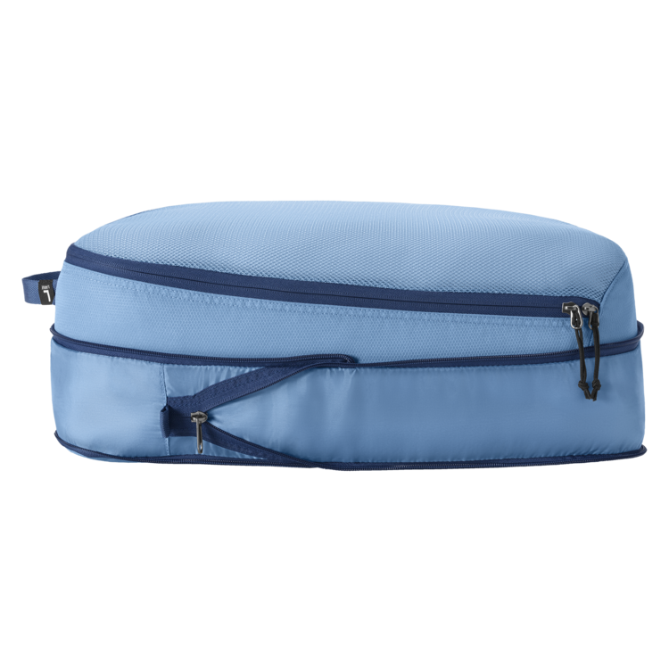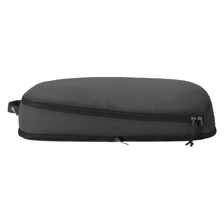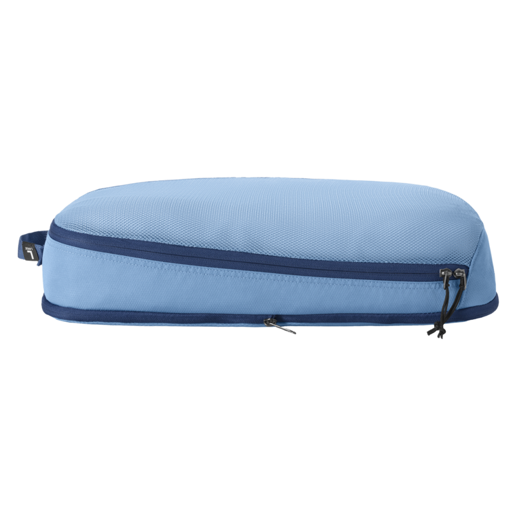 Thanks to an expansion zipper that increases the dimensions of the Pack-It® Reveal Expansion Cube L on demand, travelers get two organizers in one. The durable compression zipper shrinks bulky garments (or items purchased while traveling) into a structured parcel that frees up luggage space. And the water-resistant, 100% recycled fabric includes see-through mesh on one side to make items easy to spot.