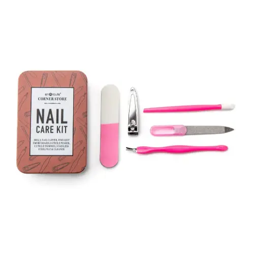 Each kit contains a cuticle pusher and trimmer, a fine grit emery board, a buffer board, and a mini nail trimmer.