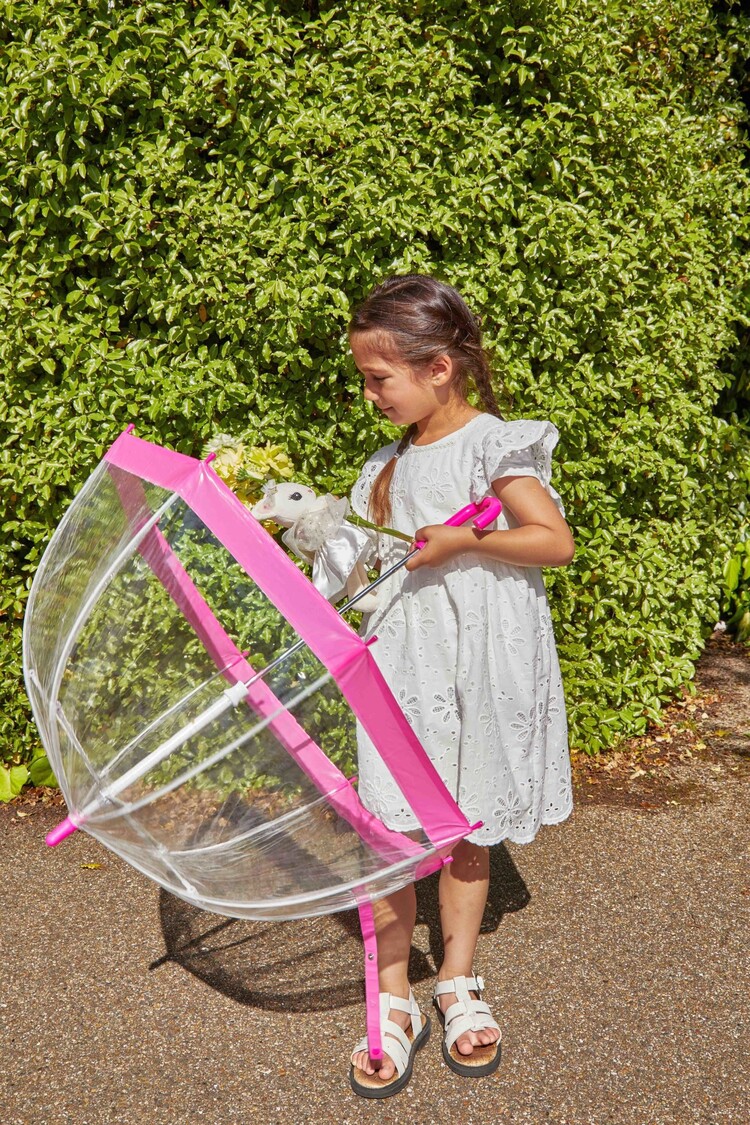 Fun umbrella with a bubble shape and bright colours that children will love! Features patented technology to prevent injury to small hands when opening and closing. Transparent dome canopy for greater visibility. Completely covers head and shoulders. Umbrella measures 68cm long when closed. Span is 65cm when open. Weight 303g (approx.)