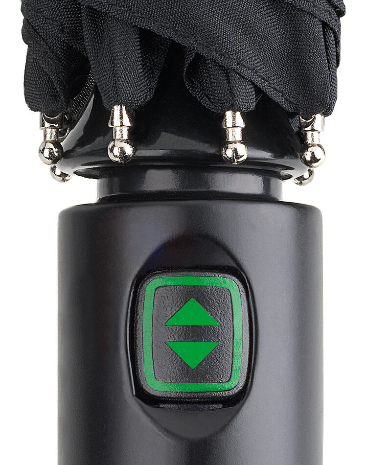 Highly engineered and robust automatic umbrella. Opens and closes easily at the press of a button. High performance polyester fabric. Sturdy crook handle. Provides good coverage. Wind resistant frame. Umbrella 31cm long when closed. UV rated up to UPF30+. Provides good coverage, canopy 98cm when open. Weight 480g (approx.)