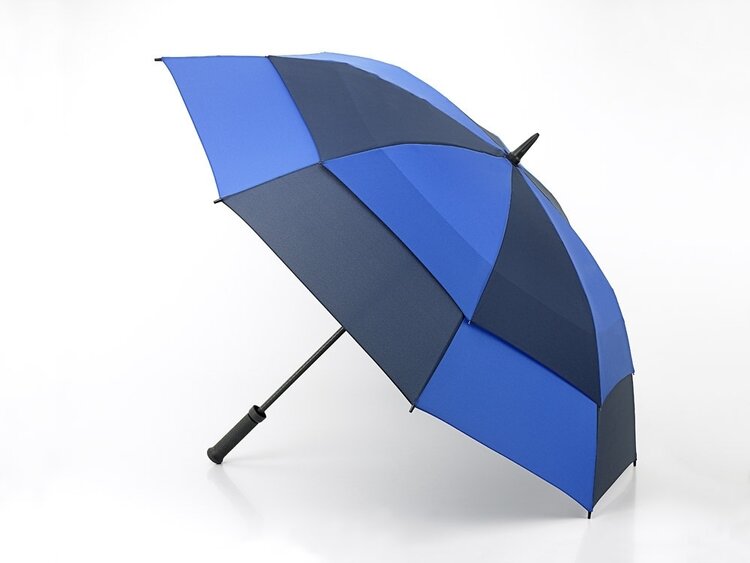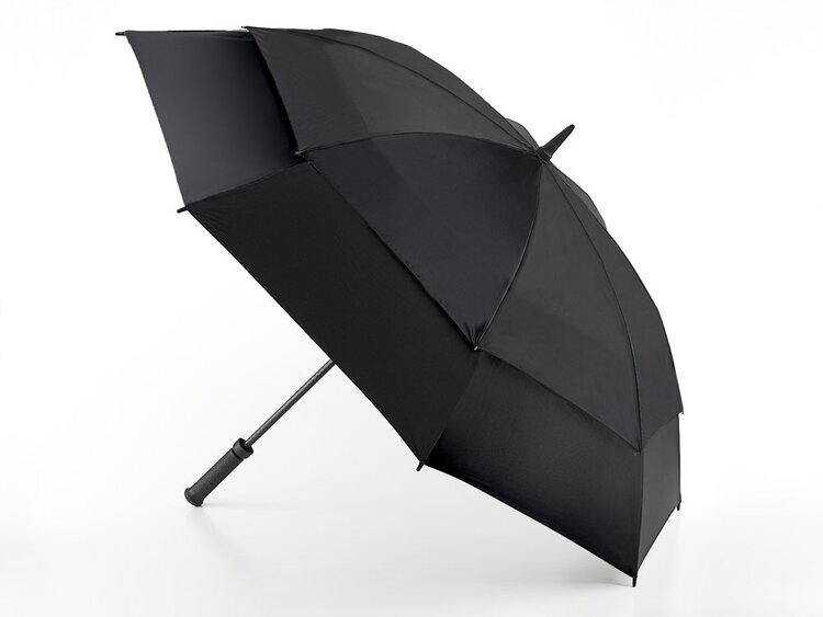 Outstanding weather protection with this supersize lightweight and strong double canopy golfing umbrella. Lightweight fibreglass frame for extra strength. Vented canopy for additional wind resistance. Non-conductive frame for safer use in storms. Rubber handle for secure grip. Umbrella measures 101cm long when closed. Weight 720g (approx.)