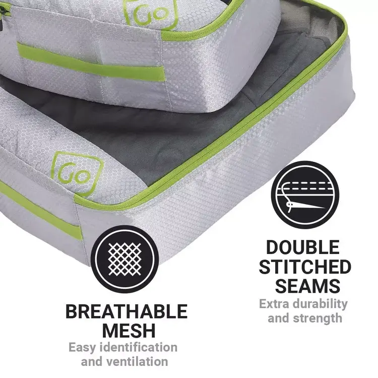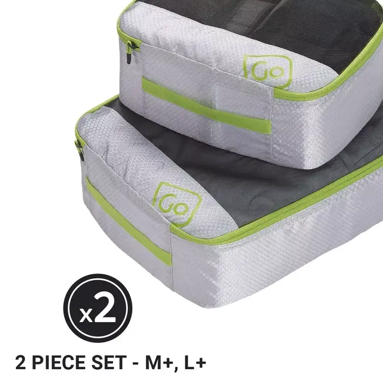 A set of 2 deeper capacity packing cubes with detachable section divider for effortless, neat organized packing and greater garment protection. Double stitched seams provide extra durability and strength and quick-grab handles and full-length zips offer immediate access when required. Breathable mesh front covers not only allow ventilation but also ensure you can instantly identify what’s inside.