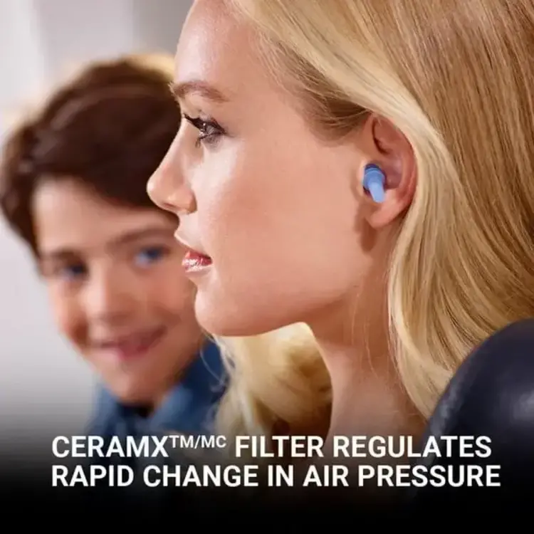 Ear protection and pain reliever for airplane travel. Ear pain can be caused by rapid changes in cabin air pressure in airplanes when taking off and landing. Don’t suffer and use the best ear protection equipment for your flight. Earplanes help relieve ear discomfort, clogging, and popping by naturally filtering and regulating air pressure with its exclusive CeramX filter. Earplanes are a must have for your next trip and are essential for your trip! Earplanes are safe, soft, and disposable - made from soft hypoallergenic silicone. Earplanes are tested by U.S. Navy pilots with there performance guaranteed. They also reduce ambient noise. Suitable for adults only. Effective for 2 flights.