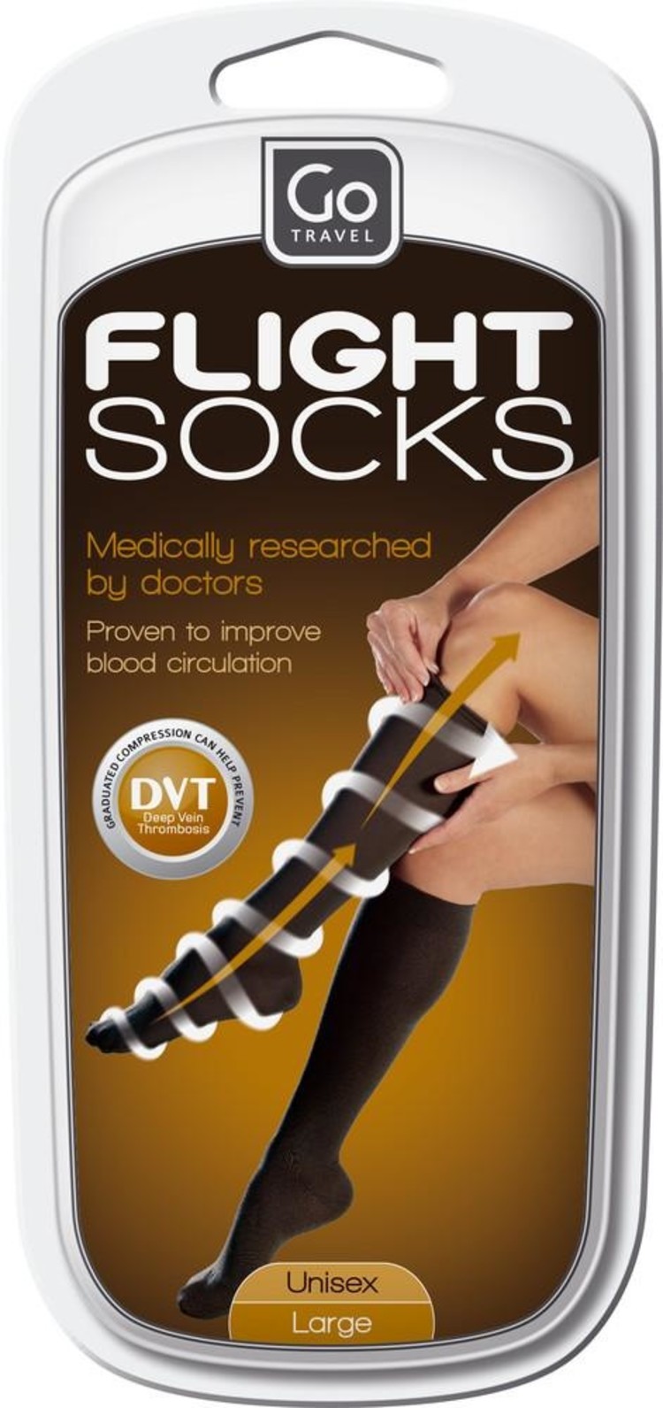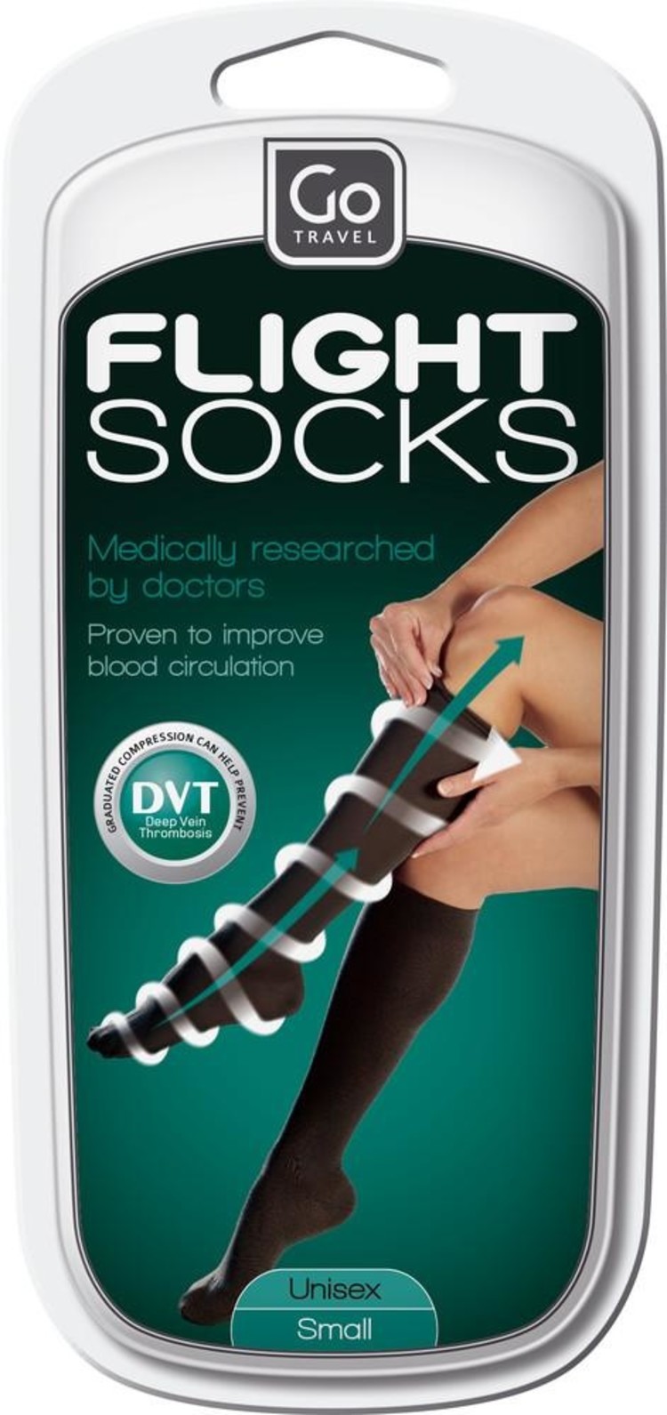 Clinically proven to improve blood circulation, these silky soft flight socks contain graduated compression to help prevent DVT (deep vein thrombosis). Medically approved, they are ideal for use on long-haul flights. Available in 3 sizes and 2 different colours, they are comfortable to wear and effective in easing the discomfort of tired legs, feet and swollen ankles.