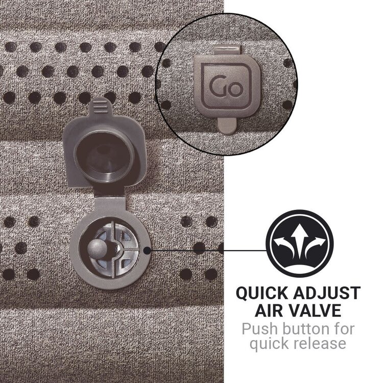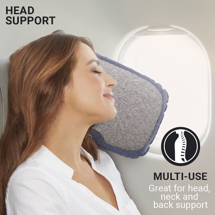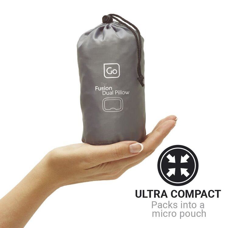 Experience a travel pillow with a comfort that’s one of a kind. A magical fusion where foam and air combine. A pillowy soft foam top cushioned by a cloud of air beneath. It makes for a dreamy union. A place to rest your head or a support for a weary back and neck. Tailor the shape with the Quick Adjust Air Valve – that’s push-button personalisation. Turn over and you’ll discover a discreet rear non-slip grip that secures the pillow, so you can lock-in that comfort spot. Best-of-all, it packs into the most compact of pouches. Take it anywhere, anytime. Pairs perfectly with The Fusion Foot Rest and The Fusion Travel Pillow