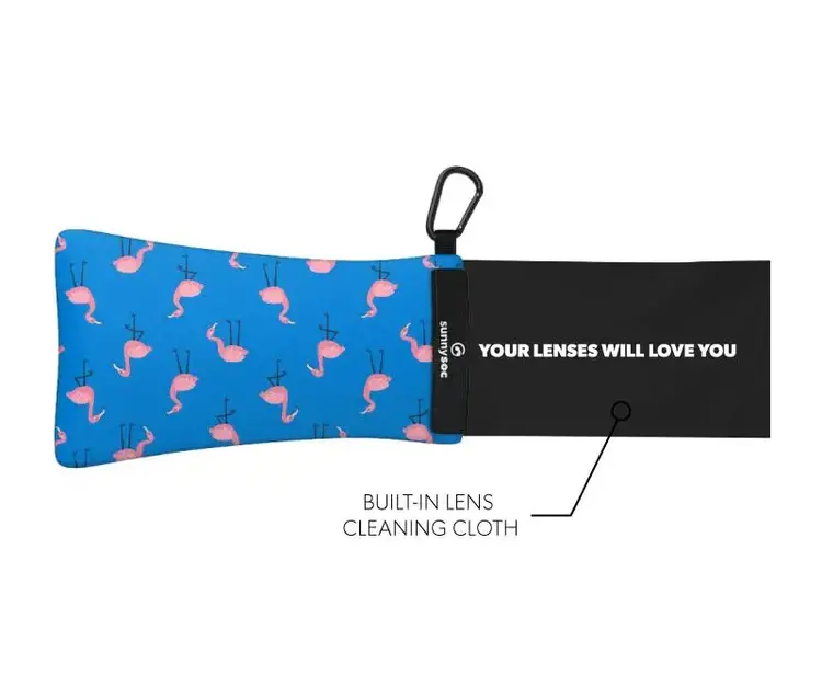 • Sunnysoc is not your average sunglass case. With a built in lens cloth, carabiner and available in fun designs, you'll never be picking up another sunglass case again.