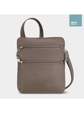 Travelon Anti-Theft Classic Slim Double Zip Crossbody- Hazelnut