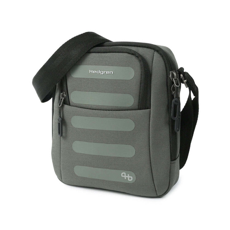 • When you’ve got a Crossover bag like this, you really can Relax on the go! It may be compact, but this design can sure pack an essential or two! With two pockets on the outside, three on the inside including a secure RFID pocket and a key hanger, there is a space for everything you could possibly need to hand when you travel. Protective side gussets and a soft foam between the outside fabric and the inner lining give this bag structure, and the main compartment has double zippers so you can open it from either side. The water-repellent exterior material is made from highly durable recycled RPET Polyester and features the reflective Hedgren logo and signature.