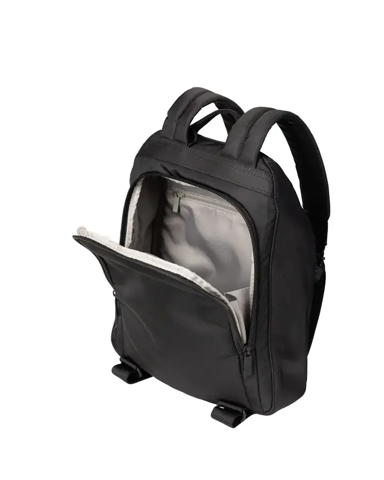 • Stay effortlessly organized and chic with the Vogue backpack. Designed with the modern-day woman in mind, this compact yet spacious backpack has a padded tablet pocket and comfortable, adjustable shoulder straps. Zipper access to the main compartment is on the back of the bag, keeping its contents extra secure as you travel throughout your day.