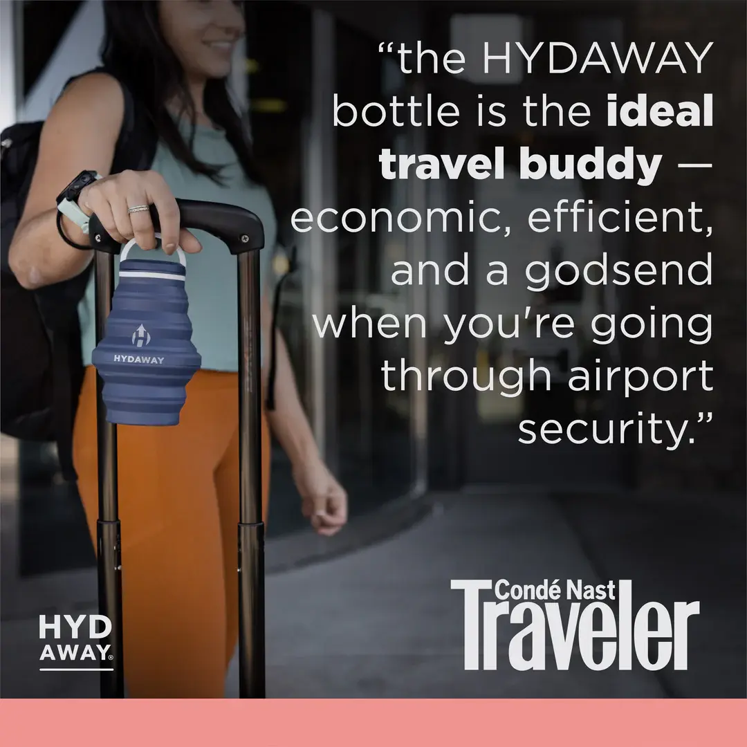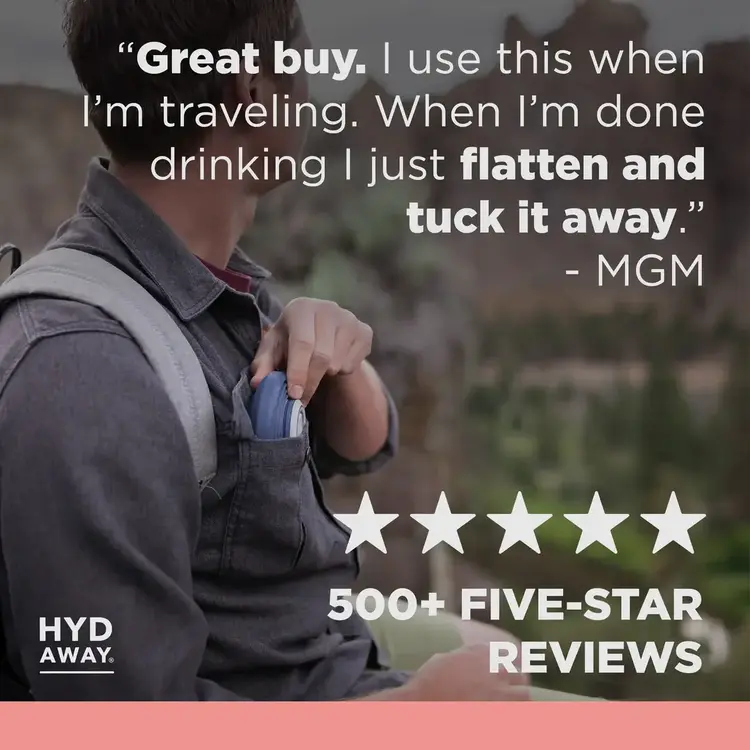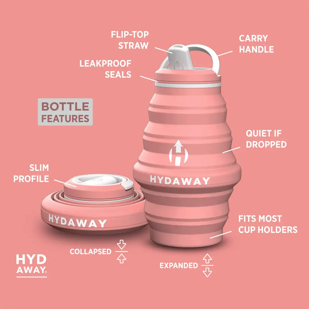 • Meet HYDAWAY. The collapsible, ultra-stashable, planet-friendly, go-anywhere way to stay hydrated.