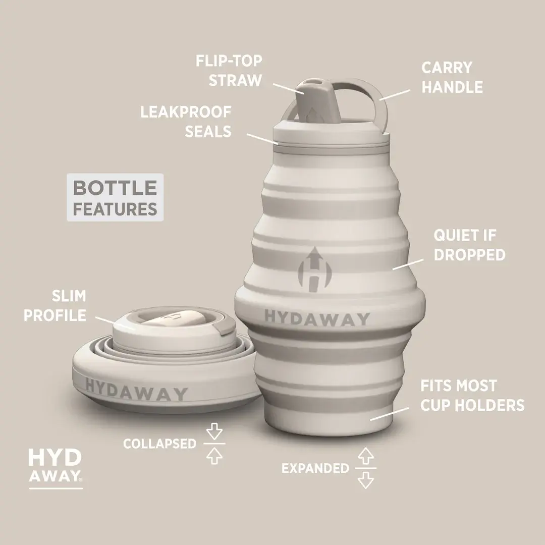 Fits in most vehicle cup holders when expanded and stashes away when collapsed