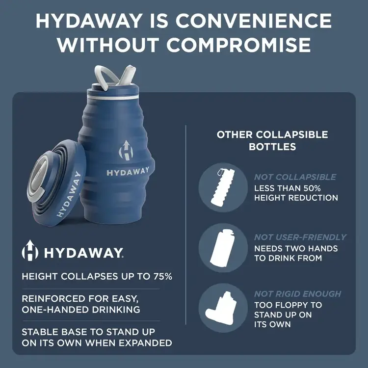 Collapses down to a slim 1.5 inch profile to easily fit in your pocket, pack, carry-on, or nearly anywhere else