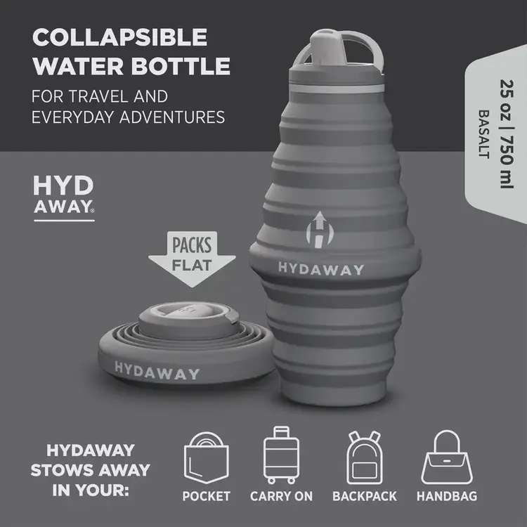 Hydaway Collapsible Water Bottle 25oz- Basalt
