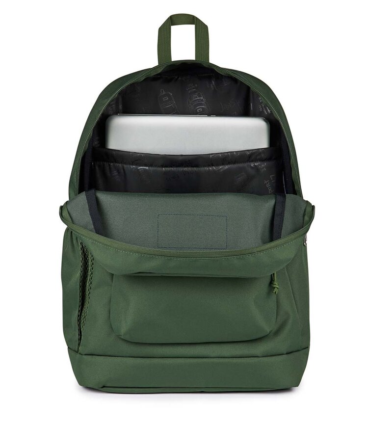 • The JanSport Cross Town Plus Backpack is the perfect companion for your daily adventures. Designed with style and functionality in mind, this backpack allows you to carry everything you need conveniently on your back. The backpack features a large main compartment, a front utility pocket with an organizer for easy access to smaller items, and a side water bottle compartment to keep you hydrated on the go. The iconic straight-cut padded shoulder straps ensure comfortable carrying, while the fully padded back panel provides added support. With an internal sleeve that fits a 15-inch laptop, you can securely carry your tech essentials. The backpack is finished with a web haul handle for easy grabbing and a capacity of 26L, offering ample space for all your belongings.