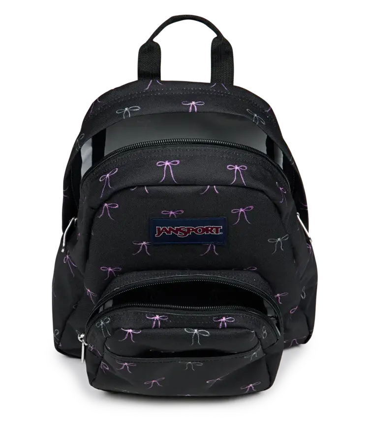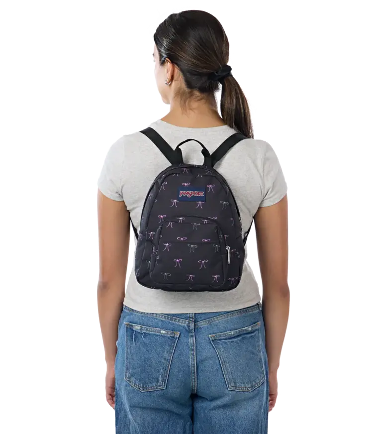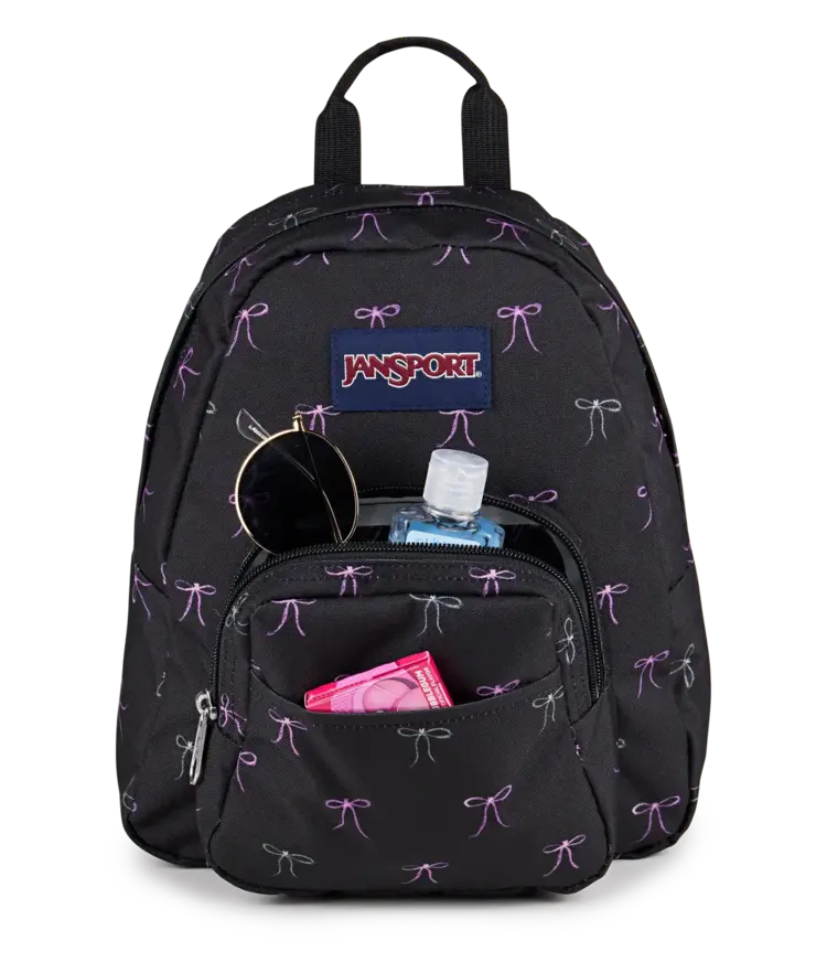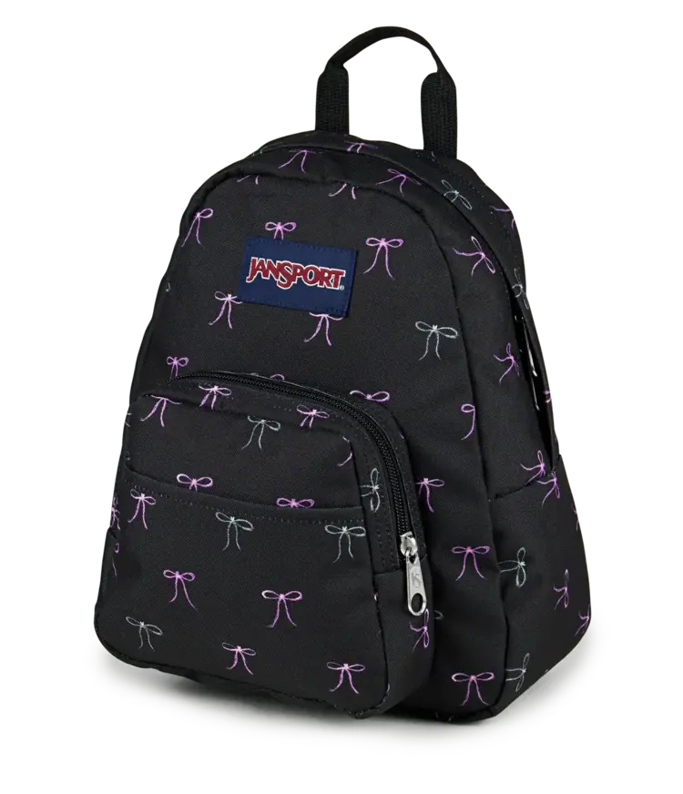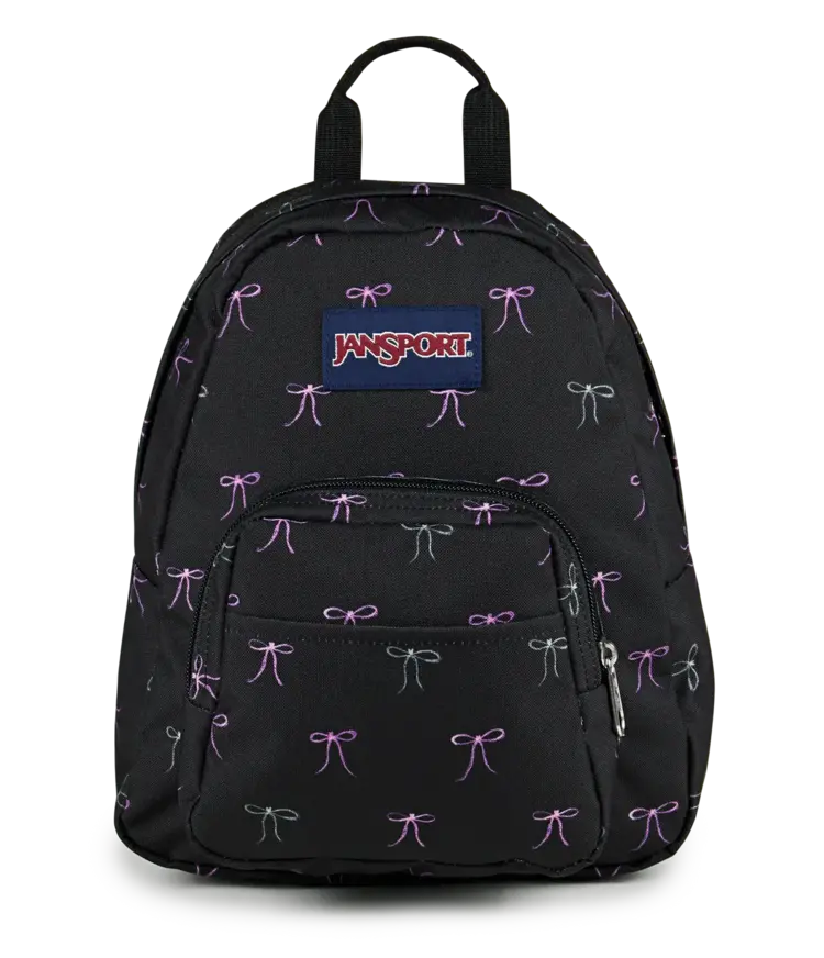 Small and light, the JanSport Half Pint is the perfect throw-on-and-go backpack. Features include a front utility pocket and key clip.