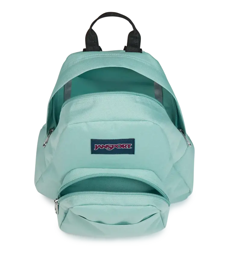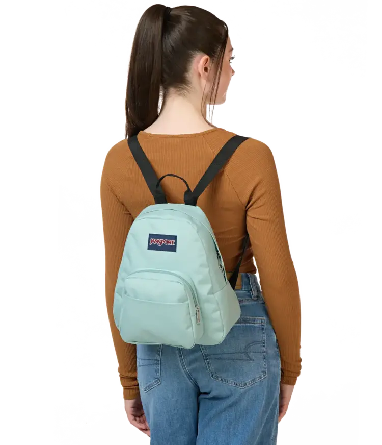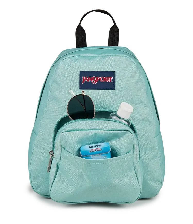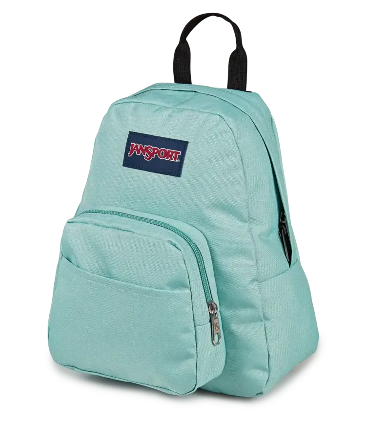 Small and light, the JanSport Half Pint is the perfect throw-on-and-go backpack. Features include a front utility pocket and key clip.