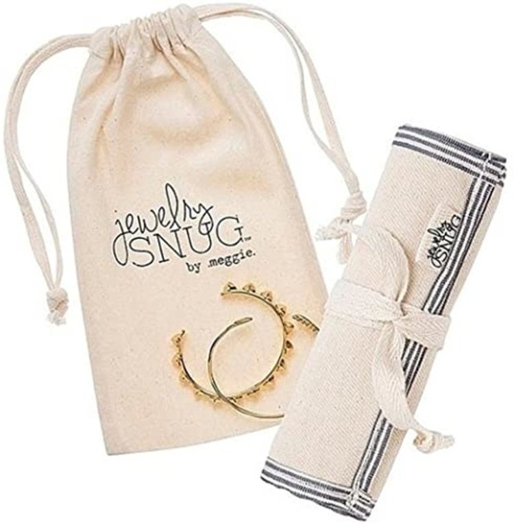 Included: 1 jewelry snug roll page, 1 jewelry snug page, 1 earring & ring cylinder, 1 drawstring pouch.