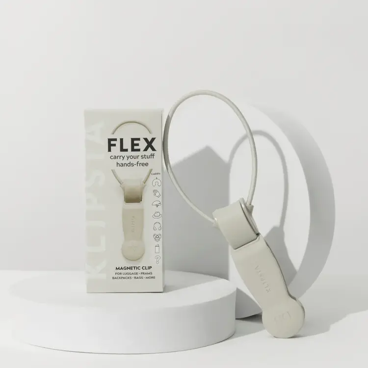 • Meet our most flexible clip yet: the FLEX Clip. FLEX comes with a large and durable elastic cord so you can easily attach to your bag, luggage, pram, and more. Great for carrying baby stuff, sports gear, water bottles, clothes, hats, headphones, and anything else that can hang. This universal carry clip can be attached to almost anything to give you an extra set of hands. Loop the elastic cord, Clip, and Go! Good to know: Super strong magnet never loses holding power Flexible elastic will bend and stretch, not snap Loops and locks securely in place to keep items safely attached Sleek and simple design in colours to suit anything Our Clips are proudly made in Australia.