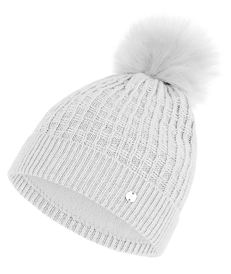 • Cashmere blend with faux fur pom pom.