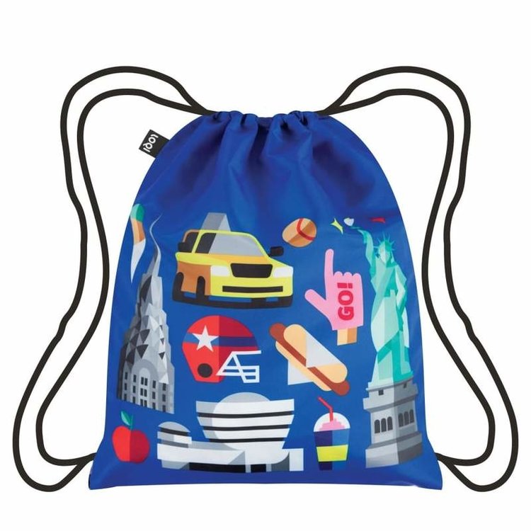 HEY is a happy design studio based in Barcelona. Their playground is brand identity, editorial design and illustration. The toys that inspire them are geometry, color and direct typography. Ready to go on a whirlwind tailspin tour with this New York drawstring backpack? Just say...HEY!