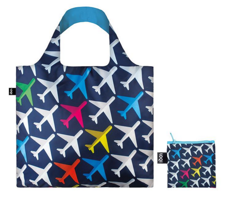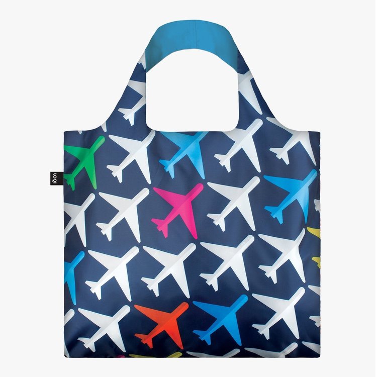 An array of airplanes already airborne. A final call for a flight to Vancouver. Beijing is just beginning to board. It’s up, up and away with the Airport Airplane tote bag.