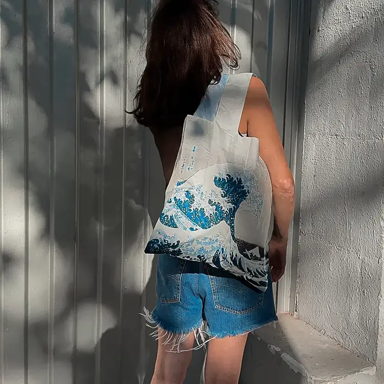 Oceanic Ode. Big blues. Wild Whites. Stormy Seas. Make a splash with Hokusai’s The Great Wave recycled tote bag.