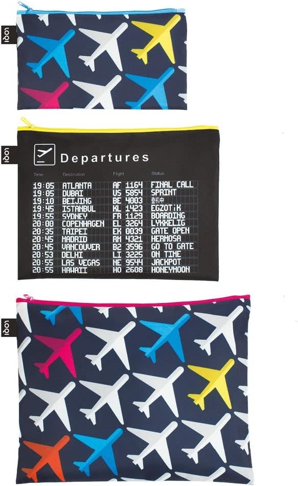 From New York to Berlin. Rome to Beijing. Where are we going next? Simply choose your destination and off we go. It’s up, up and away with the new AIRPORT zip pockets.We come as a family.Mini 13 x 23 cm (5" x 9").Midi 20 x 27 cm (8" x 11").Maxi 25 x 32 cm (10" x 13").We're made of polyester taffeta.We're STANDARD 100 by OEKO-TEX® certified.We're water-resistant.We’re made using waterless printing.We’re recyclable.