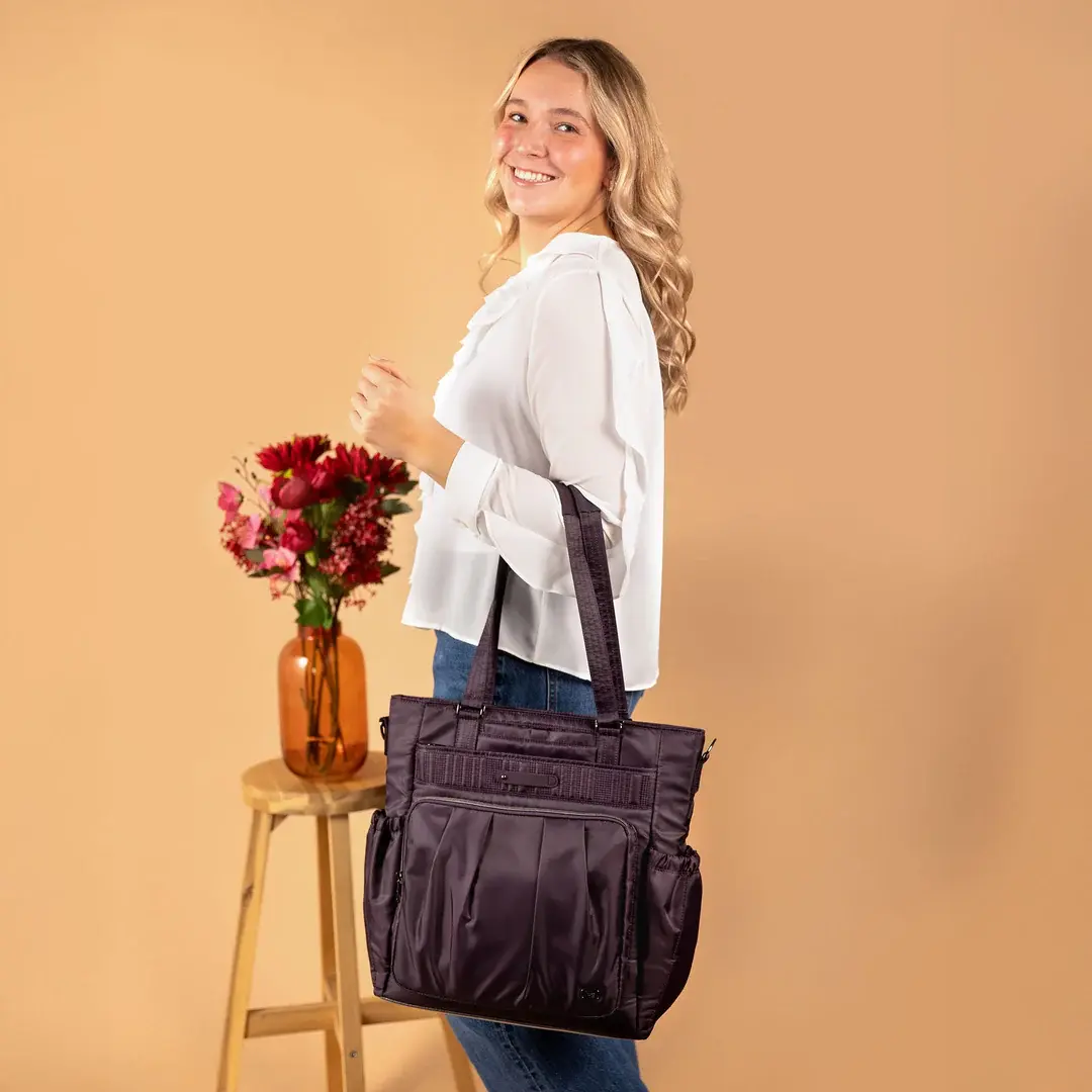 • A Lug favorite makes its return! The Ace Tote is back as part of our Lug Legacy Collection, combining smart design with everyday utility. Built for serious organization, it features multiple exterior pockets, including an insulated front pocket, and a spacious main compartment to keep everything neatly in place. With non-slip tote handles, an adjustable crossbody strap, trolley sleeve, and wipeable base with protective feet, the Ace Tote is a true Lug classic, rebuilt for busy days, travel, and everything in between.
