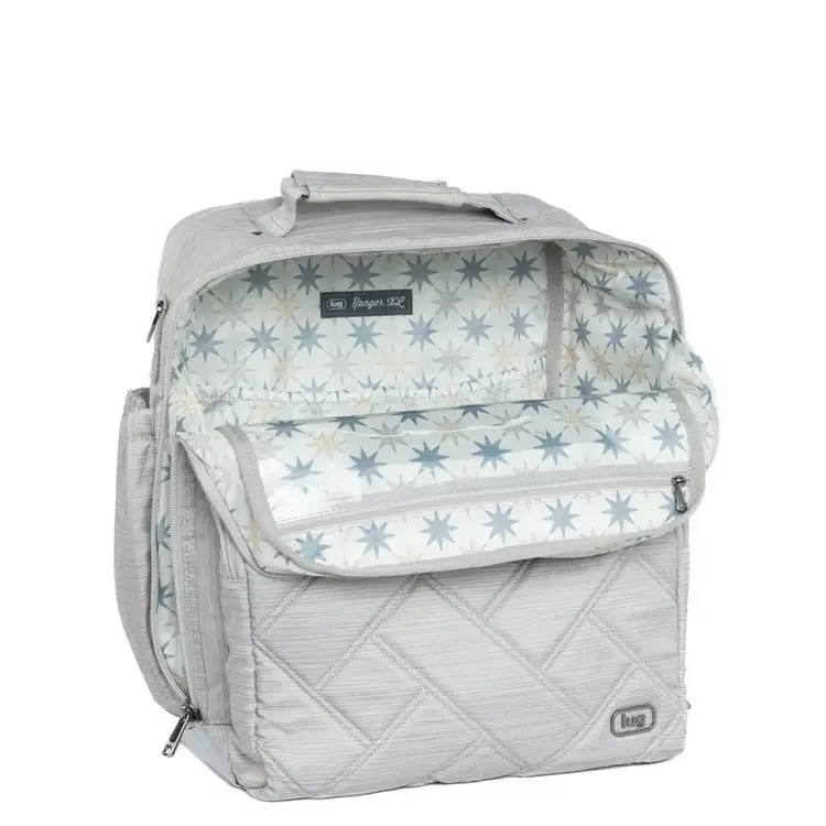 Ready for your next adventure? The Ranger XL 2 Duffel Bag is your ideal travel companion, blending style and functionality for all your vacations and getaways. With front quilting and a trendy charm bar, it features a soft-lined phone pocket with a magnetic closure, two magnetic side pockets, and a luggage trolley sleeve for effortless transport. Inside, a built-in RFID wallet securely holds six cards, while a key ring bungee cord, two pen holders, a Clearview zipper pocket, and multiple cargo pockets keep everything organized. Equipped with a top handle, a back zipper pocket, and a durable design, the Ranger XL is perfectly prepared for all your packing needs!