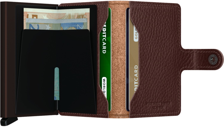 Miniwallet Veg Espresso is vegetable-tanned full-grain leather, made in Italy from European cowhide.
