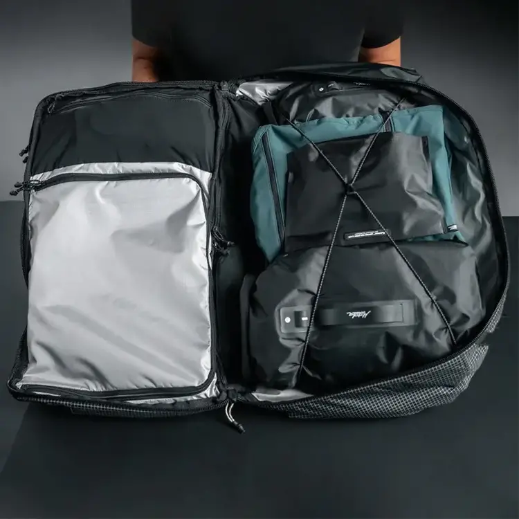 - 45 liter capacity, meets most airline carry-on requirements*- Full internal frame, aluminum framestay- Cushioned, breathable back panel and shoulder straps- Padded, breathable hip belt- Stowable hip belt and shoulder straps- Large external stash pocket- Sternum strap- Load lifters- External access admin pocket with layered organization- External access padded laptop pocket- Clamshell design with flexible internal organization- Internal shockcord securement system- Sealing YKK® zippers on all exterior pockets- Zipper security loops on all external pockets- Reflective zipper pulls for recognition in low light- External daisy chain on front- Smugglers pocket hidden behind the back panel- External water bottle pocket- Grab handles on top, bottom, front, back, and side- UHMWPE-reinforced high-wear panels- V-Compression straps on exterior- Built with recycled materials that meet Bluesign® criteria