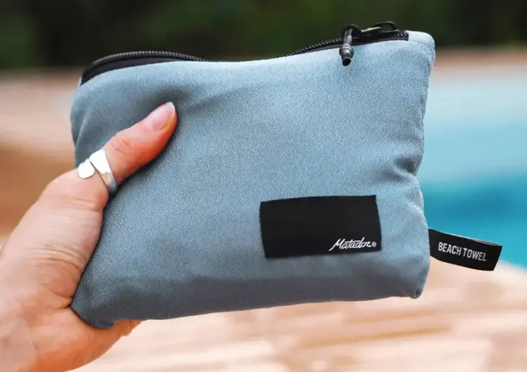 A full-sized beach towel built from our space-saving nanofiber fabric. Lightweight and quick drying, this beach towel packs down small for travel. Use the built-in zipper pocket to store keys, phone, or other small items.