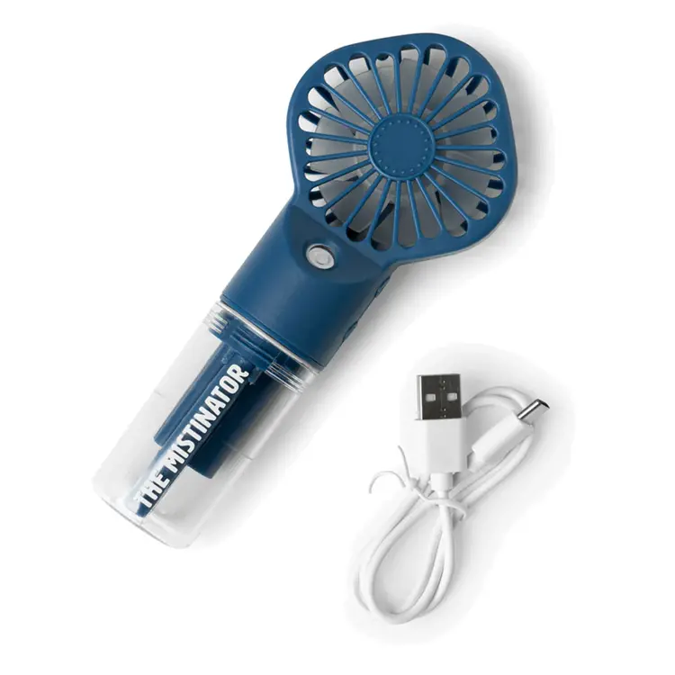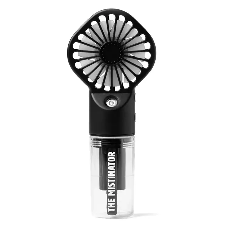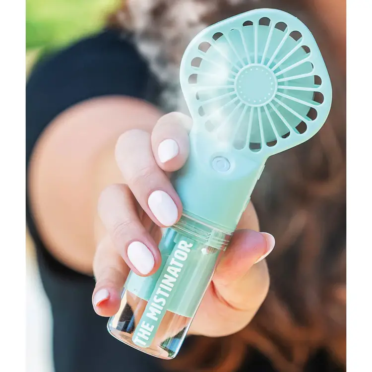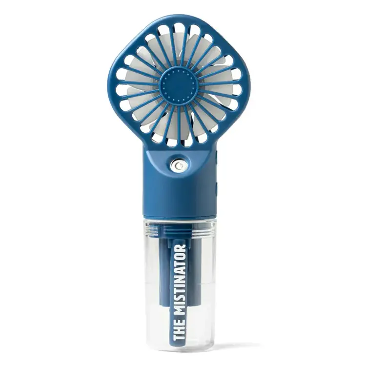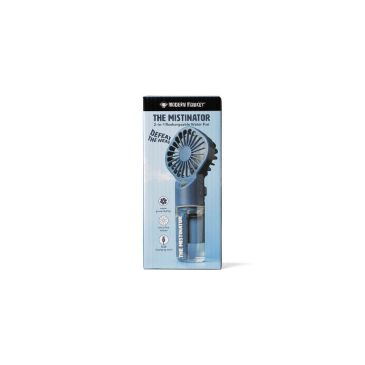 Cool off with the Modern Monkey The Mistinator 2-in-1 Rechargeable Water Fan. There are four color options to choose from: black, mint, navy or pink. This powerful mini fan has a water mister, and four speed settings. It can hold 20 ml of water. It comes with a USB-C charging cord.