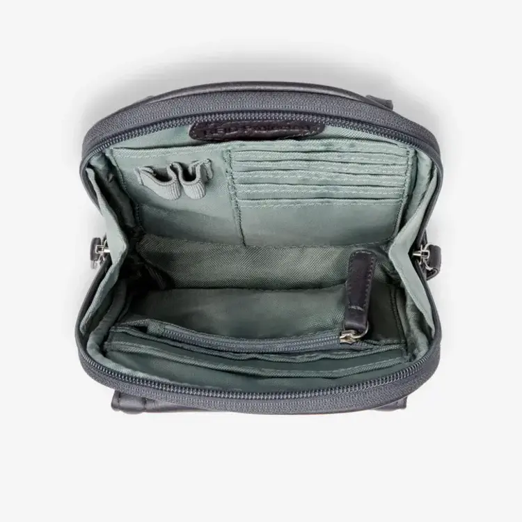 • Built in wallet compartment contains RFID lining to protect against identity theft