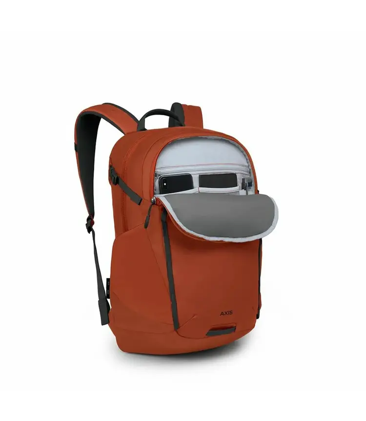 Need a bag for your everyday essentials? The Osprey Axis bag will fit as well to go to work as to go to your sport activities. Its numerous compartments will allow you to organize your computer or your documents, You take the plane? Don't panic: the dimensions of the Axis comply with the applicable standards and it can therefore be used as cabin luggage.Features• 3 compartments, one of which can hold electronic devices(or a hydration system for your sports activities)• Elastic strap, ideal for carrying a jacket or helmet• EVA foam shoulder straps and mesh back panel provide support and ventilation• 3 zipped compartments• Compartment for bottle or water bottle• Elastic compression system in the front• Organizer pocket in front panel• Key ring clip on the inside• LED light attachment• Padded pocket for computer and tablet• Removable belt straps• Stretchy mesh side pocket• Scratch-resistant pocket for glasses and electronicsMaterials• 210/420/630D Nylon Dobby BlendSpecifications• Dimensions: 47x29x23cm• Volume: 24L/1465 in.cu• Weight: 0.74kg